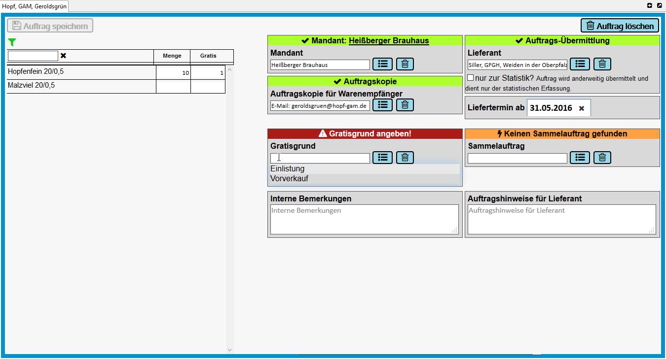 • Übergabe der Auftragsdaten an nachgelagerte Systeme