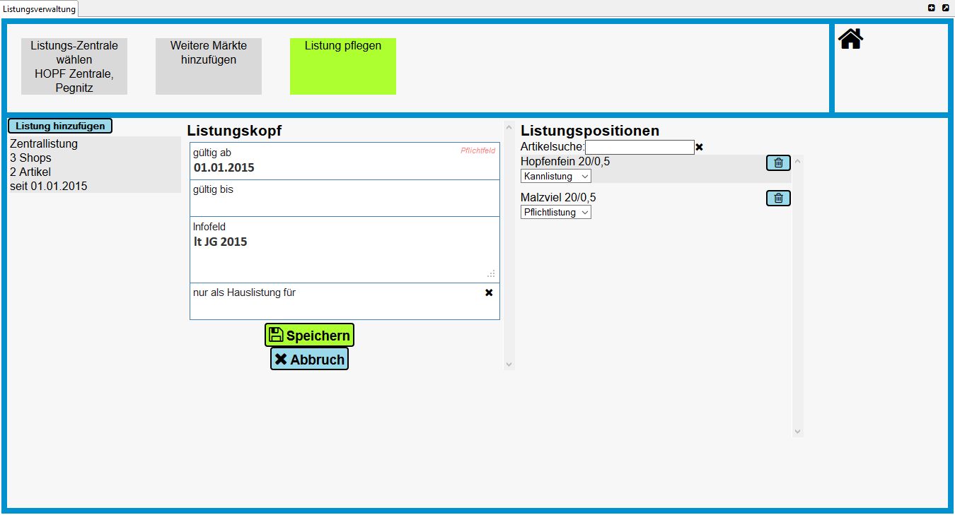 • Zentral-/Hauslistung